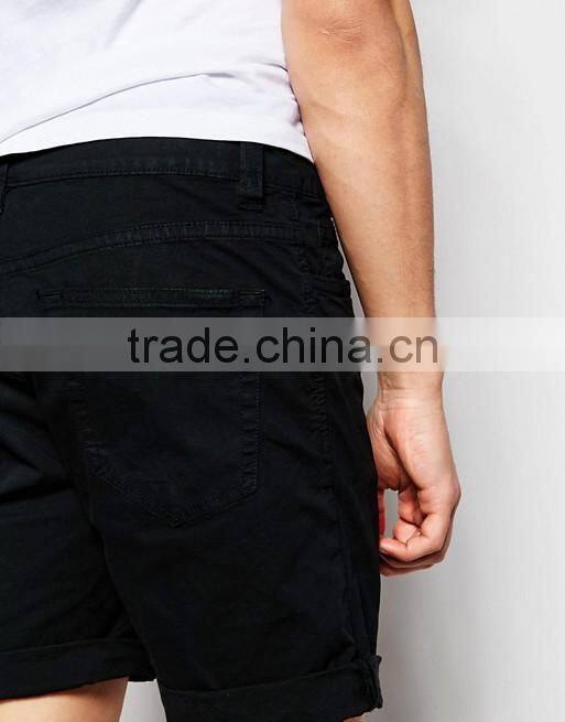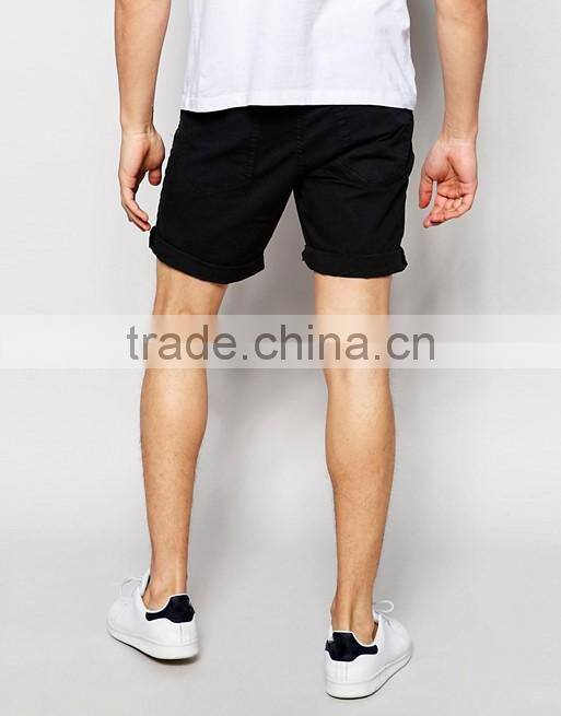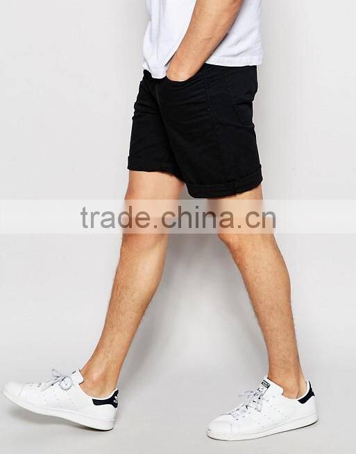 2016 Hot Sale Latest Custom Five Pockets Men's Black Slim Fit 98% Cotton 2% Elastane Stretch Denim Zip Fly Casual Shorts