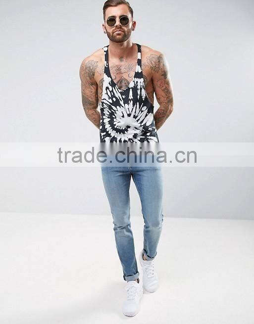 2017 High Quality New Design Summer Printed Custom Blue Sky Gym Wear Comfortable Cotton Polyester Casual Men's Sport Tank Tops
