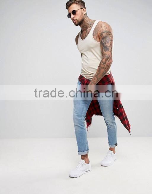 2017 High Quality New Design Custom White Color Gym Wear Comfortable 100% Cotton Fashion Men's Sport Tank Tops