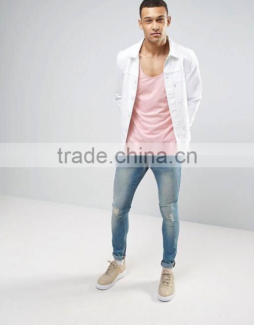 2017 Competitive New Design Custom Manufacture White Color Gym Wear Comfortable 100% Cotton Fashion Running Men's Tank Vest