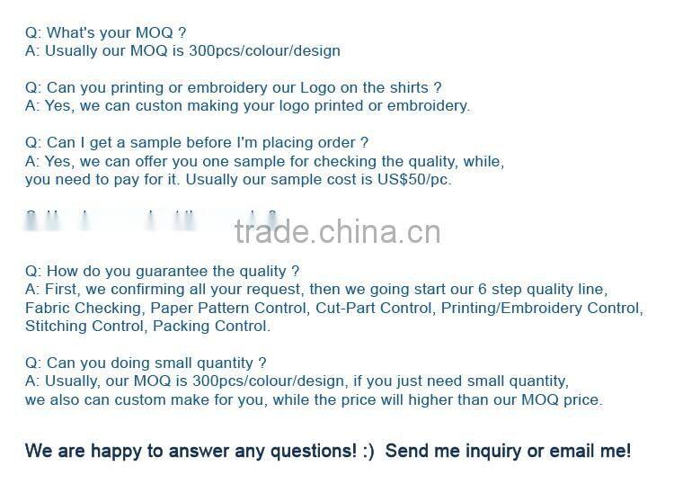We specializing in the design, manufacturing and marketing of garments, also undertake specialized and customized orders. Our main products now include T-shirts , polo shirts , sports wear , windbreakers , sweaters , uniforms and workwear.