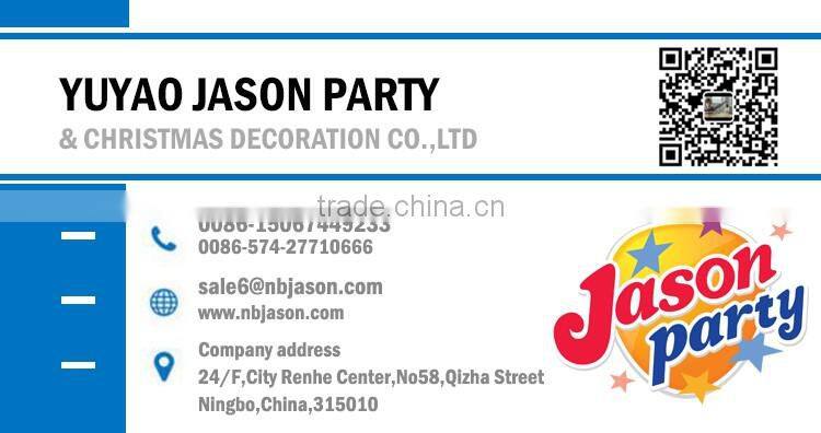 Yuyao Jason Christmas Decoration Co., Ltd. was established in 2000. We are a manufacturer and exporter specialized in professional party costumes, ornaments, gifts and toys for western festivals, such as Christmas, Easter, Valentine's Day, Halloween, Carnival, etc. Many Hawaiian series products are available. Our factory is located besides 329 highway from Hangzhou to Ningbo, our office building and showrooms are in the centre of Ningbo city with convenient communication and transportation. Having been in this field for many years, we are professional and we can produce new products of good quality in the shortest time, with the most competitive prices. And just for this, we have got a good reputation from oversea customers. Therefore, all of our products sell well in Europe, America, Australia and Southeast Asia markets. We warmly welcome any suggestions or comments from our customers to improve our services and product varieties. If you have any interest, please do not hesitate to contact us for further details, we are willingly looking forward to your news.