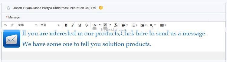 Yuyao Jason Christmas Decoration Co., Ltd. was established in 2000. We are a manufacturer and exporter specialized in professional party costumes, ornaments, gifts and toys for western festivals, such as Christmas, Easter, Valentine's Day, Halloween, Carnival, etc. Many Hawaiian series products are available. Our factory is located besides 329 highway from Hangzhou to Ningbo, our office building and showrooms are in the centre of Ningbo city with convenient communication and transportation. Having been in this field for many years, we are professional and we can produce new products of good quality in the shortest time, with the most competitive prices. And just for this, we have got a good reputation from oversea customers. Therefore, all of our products sell well in Europe, America, Australia and Southeast Asia markets. We warmly welcome any suggestions or comments from our customers to improve our services and product varieties. If you have any interest, please do not hesitate to contact us for further details, we are willingly looking forward to your news.