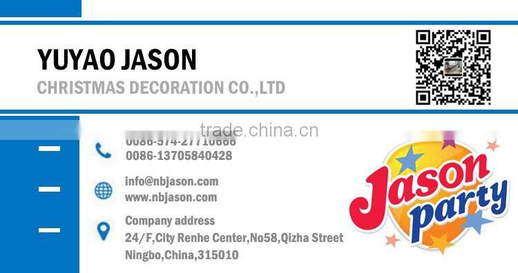 Yuyao Jason Christmas Decoration Co., Ltd. was established in 2000. We are a manufacturer and exporter specialized in professional party costumes, ornaments, gifts and toys for western festivals, such as Christmas, Easter, Valentine's Day, Halloween, Carnival, etc. Many Hawaiian series products are available. Our factory is located besides 329 highway from Hangzhou to Ningbo, our office building and showrooms are in the centre of Ningbo city with convenient communication and transportation. Having been in this field for many years, we are professional and we can produce new products of good quality in the shortest time, with the most competitive prices. And just for this, we have got a good reputation from oversea customers. Therefore, all of our products sell well in Europe, America, Australia and Southeast Asia markets. We warmly welcome any suggestions or comments from our customers to improve our services and product varieties. If you have any interest, please do not hesitate to contact us for further details, we are willingly looking forward to your news.