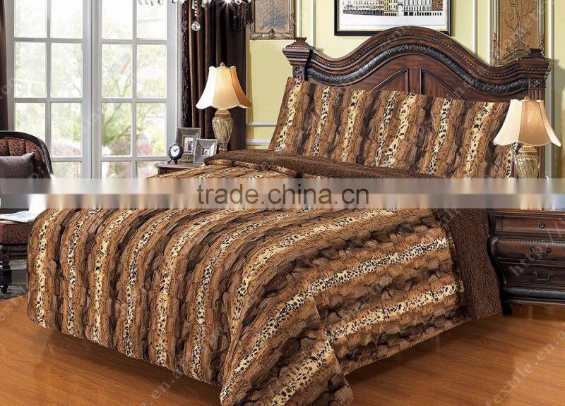 Home > Products > Comforter > 100% Polyester Hand Made PV Fleece Quilt Pillow Cover Bed Sets Animal Fur Design