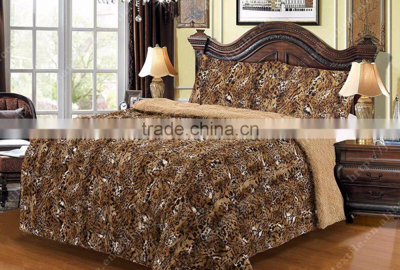 Home > Products > Comforter > 100% Polyester Hand Made PV Fleece Quilt Pillow Cover Bed Sets Animal Fur Design