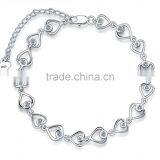 Fashion New Design 925 Sterling Silver Heart Shape Bracelet for Girls
