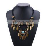 Vintage Metal Leaf Pendant Garment Necklace for Womens Jewelry