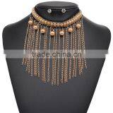 Fashion New Design Black Lace With Champagne Color Pearls Pendant Chain Tassel Choker Necklaces