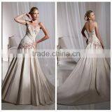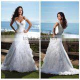 Sleeveless Design Chiffon Beaded Wedding Dress With Long Tail