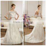 Vintage Backless Lace Three Quarter Sleeve Wedding Dress