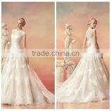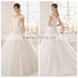 New Real Lace Cap Sleeve Ball Gown High Collar Wedding Dress