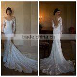 Fashion Lace Mermaid Long Sleeve Cheap Muslim Wedding Dress