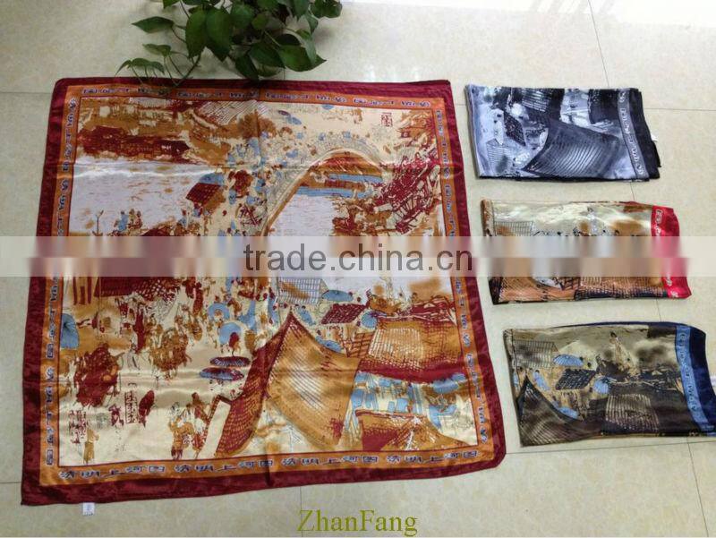 Home > Products > accessories > Promotion Cheap Painting Satin Scarf Square Scarf 90*90 cm Cheap Square Scarf
