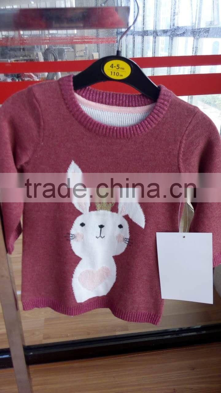 2017 Stylish Kids Girls Sweater Grey Animal Long Sleeve Sweater With High Neck Pullover Sweater (W63)
