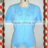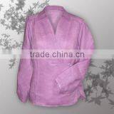Ladies Neck Design of Ramie Blouse With Pleats Design