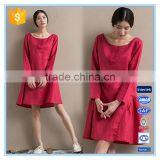 Fashion Red Linen Ladies Winter One Piece Dress of Large Size