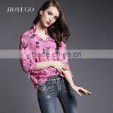 2015 HOYUGO Latest Printed Blouse Designs, Model Loose Blouse, Lao Silk Blouse Wholesale Manufacturer in China.