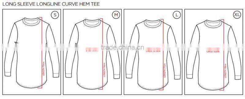 Top Selling Products 2017 95% Cotton 5% Spandex Curved Hem Long Sleeve T Shirt Mens Gym Fitted Longline T Shirt OEM