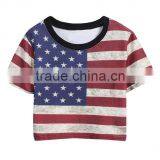 American Flag Custom Printed Womens Crop Top Tee Street Wear Red Blue Short Sleeve Striped Stars Print Cropped T-Shirt
