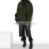 Srping 2017 European Style New Style Ripped Hoodie Women Fashion Pullover Hoodie With Strings
