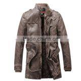 MSW0025 2016 New Design Men's Leather Jacket Long Zipper Washed PU Leather Casual Jacket
