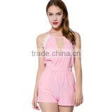 Casual Style Fashion v Neck Striped Spaghetti Strap Women Backless Romper