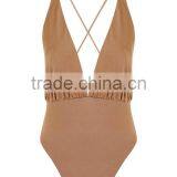 Elegant Sexy Plunge Straps Cross Back Slinky Jersey Wrap Bodysuit Tops
