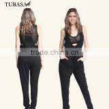Guangzhou Ladies Clothing Black Lace Trim Cut Out Black Jumpsuit, Sexy Jumpsuits, New Look Playsuit