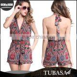 2017 Sexy OEM Halterneck Ladies Playsuit ,Summer Romper,Floral Printing Jumpsuit