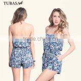 Custom Apparel Manufacturer Floral Printed Bandeau Jumpsuit Shorts Pattern, Guangzhou Clothes,