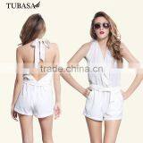 Ladies Wholesale Clothing White Halter Neck Women Jumpsuit 2016, Jumpsuit Fashion New Design, Women Clothes