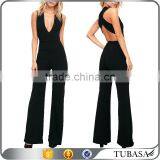 Ladies V Neck Fashionable Sexy Black Long Rompers Jumpsuits for Women