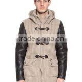 Men Hoodie Knitted Cardigan Leather Sleeve Wool Sweater Coat