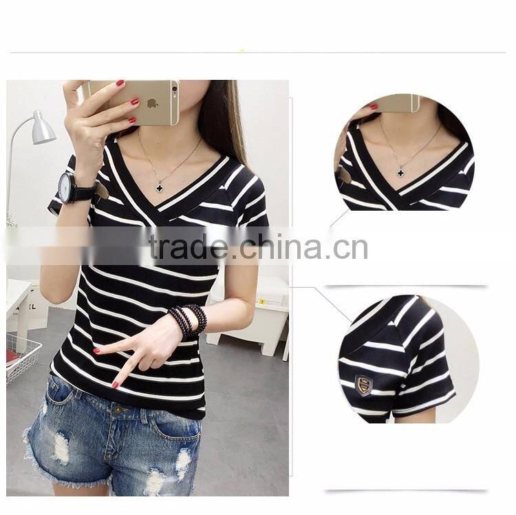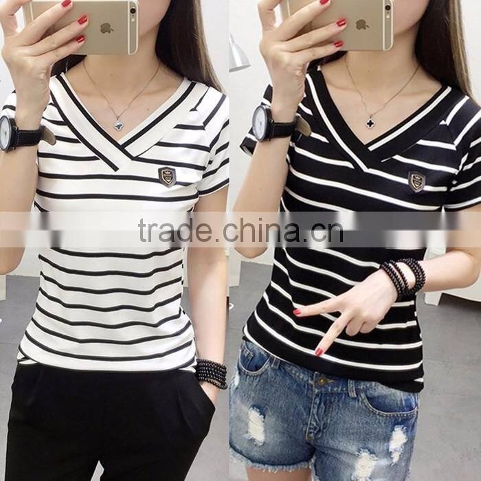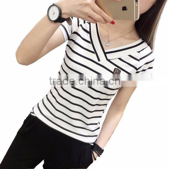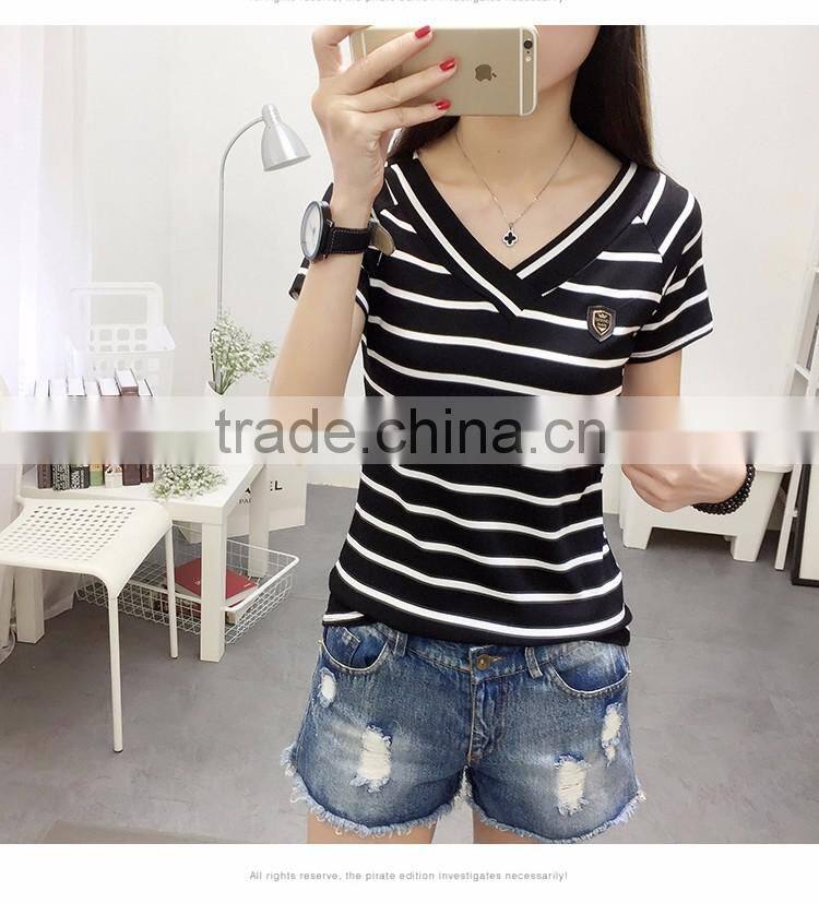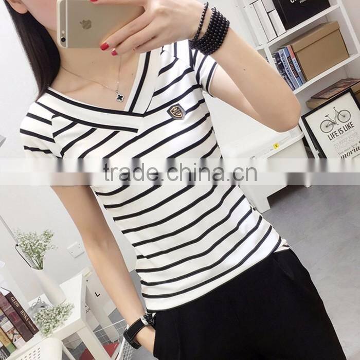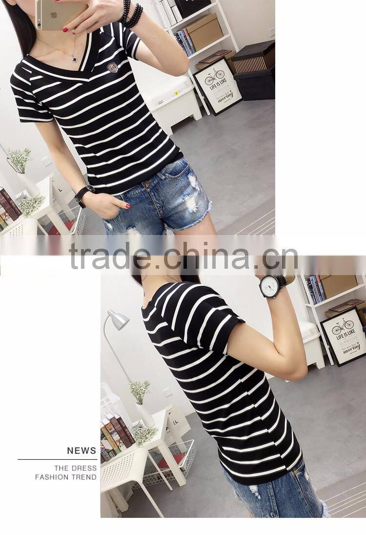 Summer Wear the New Personality Joker Contracted Stripe T-shirt With Short Sleeves Female Students Show Thin Blouse
