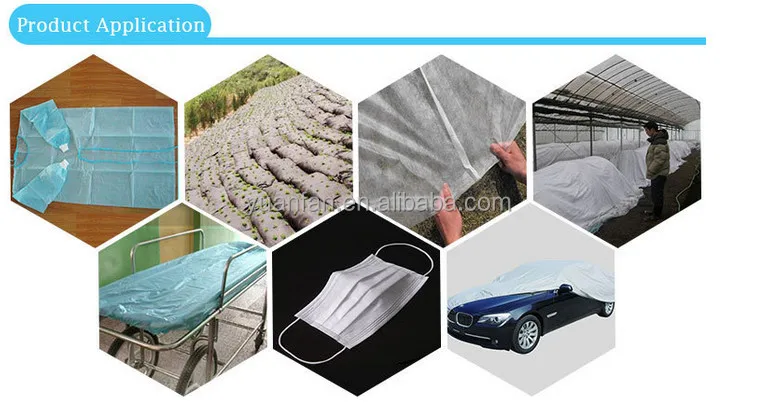 (1). Medical field: Face mask, Surgical gown, protective clothes, operation cover, cap, shoe cover, bed sheet etc.