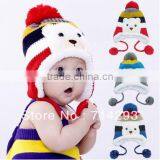 Colorful Stripe Pattern Cartoon Bear Design Thicken Crochet Wool Hat With Earflap 18569