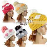 New Fashion Woman Girls Lovely Warm Winter Knitting Wool Large Ball Pineapple Beanie Hat 6 Colors 7673