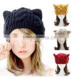 2014 New Fashion Korean Women Lady Horns Cat Ear Crochet Knitted Beanie Wool Hat Cap Winter Warm Hat 5 Colors 19311