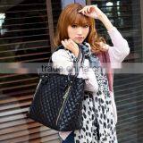 Black Retro Women Office Lady Quilted Shoulder Tote Bag Handbag