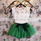 New 2pcs/set Baby Girl Children's Beauty Lace Agaric T-shirt Vest+ Mini Skirt Dress Bow Belt Skirt SV009464#