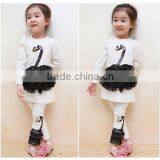 Black and White Baby Girl Swan Cotton Suit Autumn Children Suit for Girls Fall Paragraph T-shirt +Pants 20019