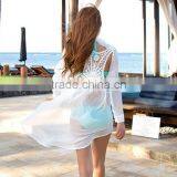 Retro Women's Chiffon Shirt Backless Lace Crochet Bikini Swimwear Beach Cover Up Sexy White Bathing Suit SV003940