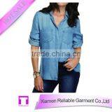 Fashion Lady Long Sleeve 100% Cotton Denim Blouse