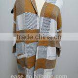 2017 Wholesale Knitwear Manufacturer Grey & White Winter Womens Sweater Coat