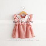Pink Flutter Sleeve Linen Summer Dress Baby Frocks Designs Lace Boutique Girl Dress