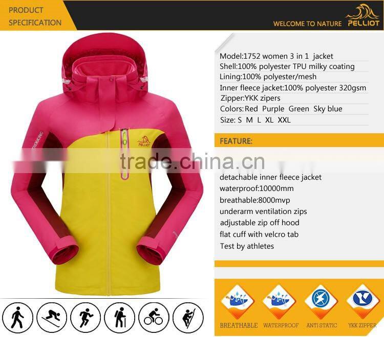 Ladies Sport Jacket Sportswear China 3 in 1 Waterproof Clothing Outdoor Jacket