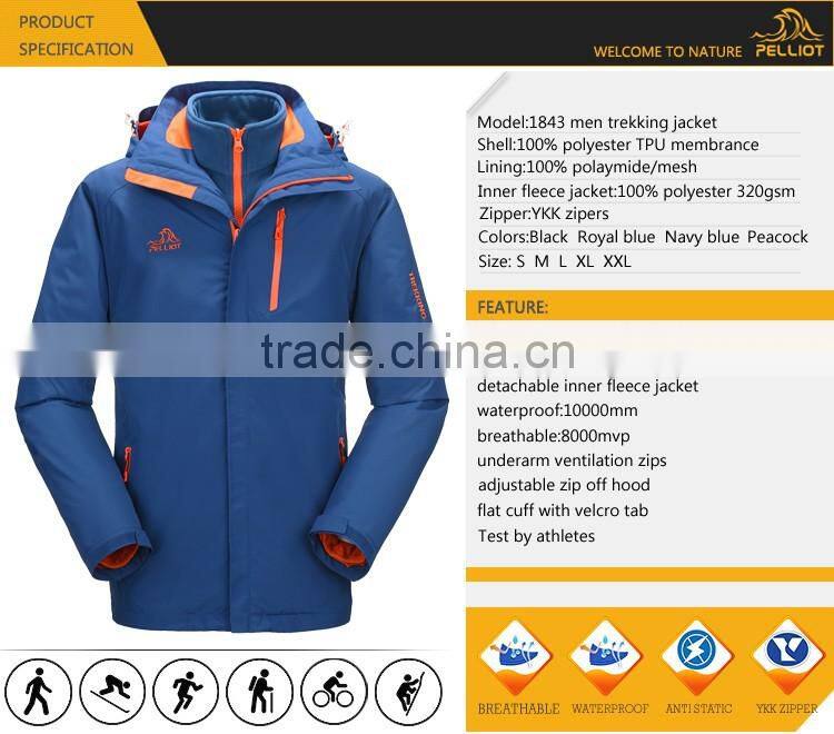 OEM popular style for men 3 in 1 waterproof outdoor jackets with hoodies
