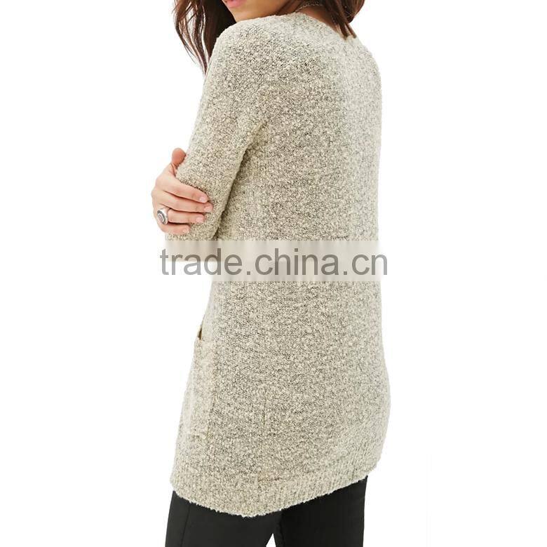Home > Products > Lady sweater > Double Color Kintted Ladies Cardigan With Open Front and Front Patch Pockets