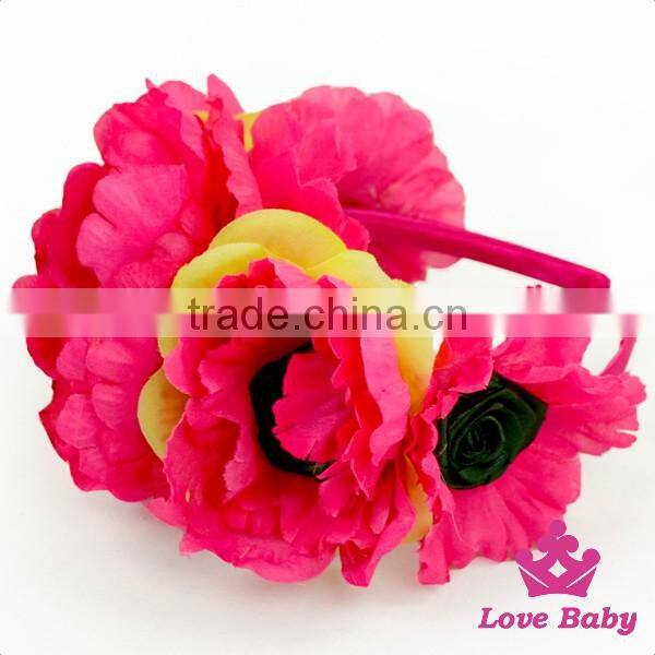 FGA045 Yiwu Lovebaby Kinds Of Color Plastic Small Flowers Splicing Wreath And Lace Ribbon Headbands For Baby Girls Wear